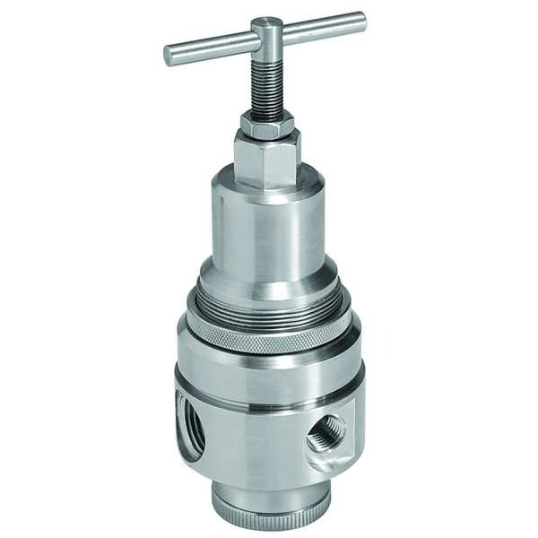 Compressed Air Regulator, Air Inlet Size 1/2 in, Air Inlet Type NPT, Maximum Flow Rate 80 cfm, Maximum Operating Pressure 300 psi, Maximum Operating Temperature 180 Degrees F, Pressure Gauge Included No, Adjustment Mechanism Knob, Overall Width 3 3/8 in, System Location Air Line, Series SR2, Adjustment Mechanism Material 316 Stainless Steel, Air Inlet Gender Female, Air Outlet Gender Female, Air Outlet Size 1/2 in, Air Outlet Type NPT, Body Material 316 Stainless Steel, For Fluid Type Air