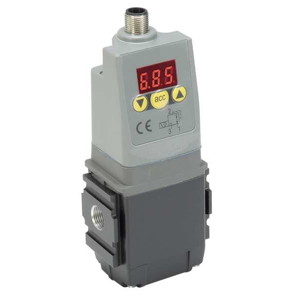 Proportional Regulator, Maximum Operating Pressure 152 psi, Minimum Operating Pressure 7.3 psi, Air Inlet Size 1/4 in, Air Inlet Type NPT, Enclosure Rating IP65, Electrical Connection Type M12 Connector 4-Pole, Accuracy +/-0.3 Percent, Adjuster Mechanism Control Knob, Air Outlet Size 1/4 in, Air Outlet Type NPT, Control Signal 0 to 10V, 4 to 20 mA, Current 200 mA, Indicator Type High Visibility LED Display, Input Voltage 24 V DC, Maximum Flow Rate 35 cfm
