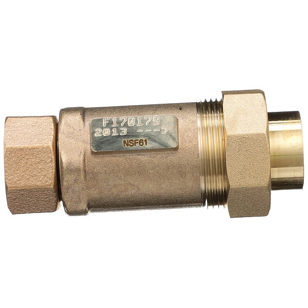 Backflow Preventer, Size 1 in, Connection FMTC x FNPT, Body Material Bronze, Temp. Range Up to 180 Degrees F, Max. Temp. 180 Degrees F, Max. Pressure 175 psi, Width 2 in, Length 4 1/2 in, Features Acceptable for use in Potable Water Systems, Horizontal or Vertical Installation, Low-Lead Law Compliant, Many different Inlet and Outlet Connections available, Standards ASSE 1012, CSA, NSF/ANSI/CAN 61, Compliance ASSE 1024, CSA, NSF/ANSI/CAN 61