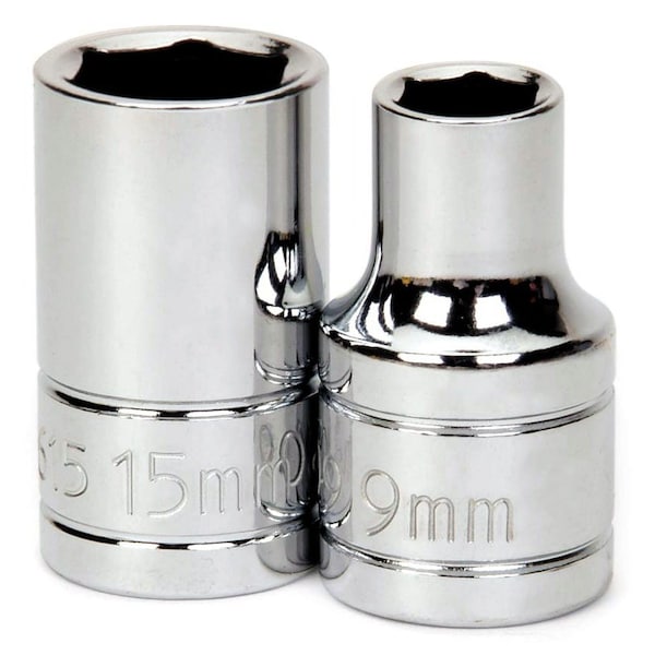 1/2" Drive, 9mm Metric Socket, 6 Points, Standard 1/2" D, 6Pt, 9mm