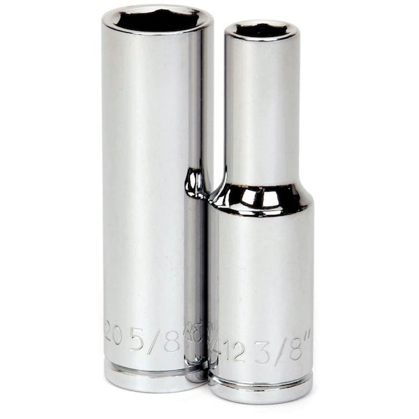 1/2" Drive Impact Socket High Polished Chrome, Deep 1/2"D, 6Pt, 3/8