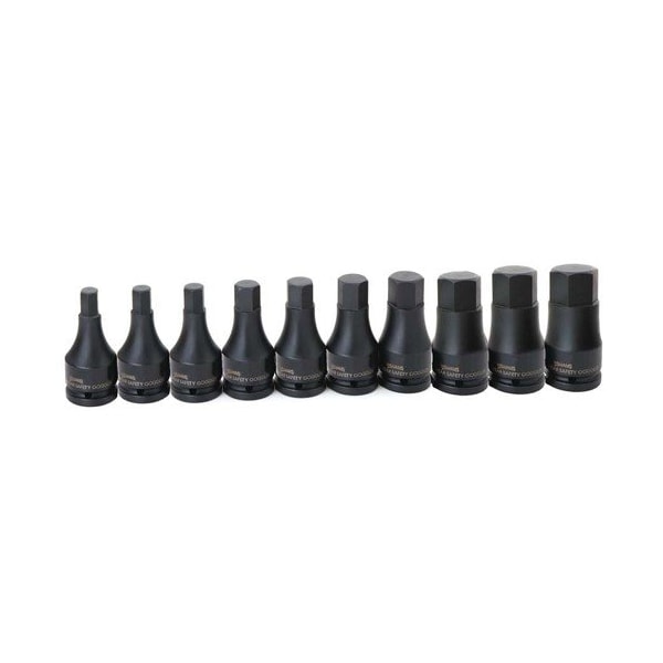 3/4in. Drive One Piece Impact Hex Bit Drivers, Sizes: 10 - 32 mm, Metric, 10 piece set