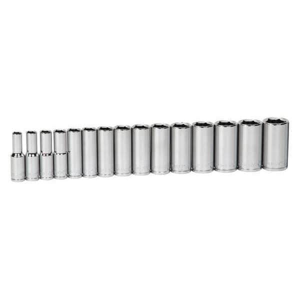 Deep Socket Set,1/2" D,6Pt 15pcs. Metric