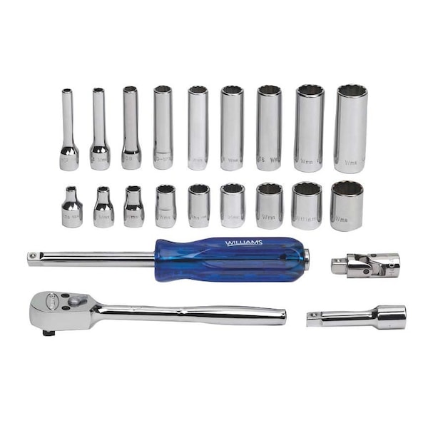 Socket Set, 1/4" D, 12Pt, 22pcs., JHWWSM-22F