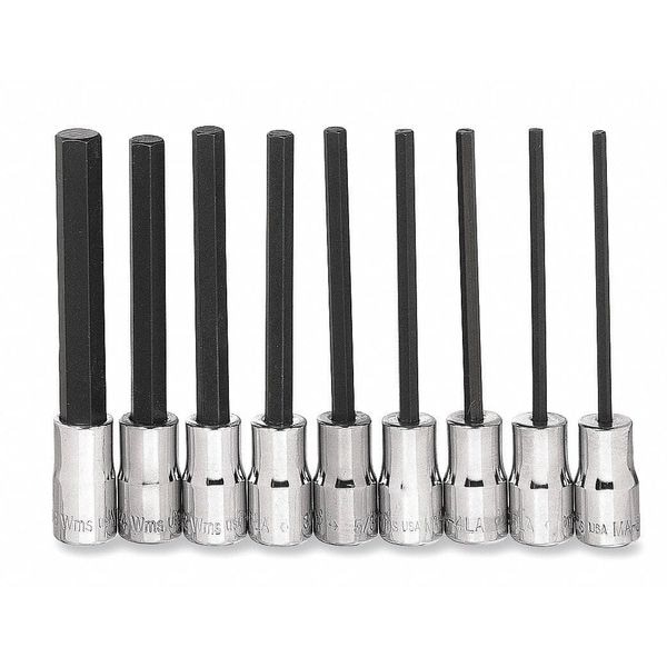 Williams Long Hex Bit Socket Set, 1/4" D, 9pcs.