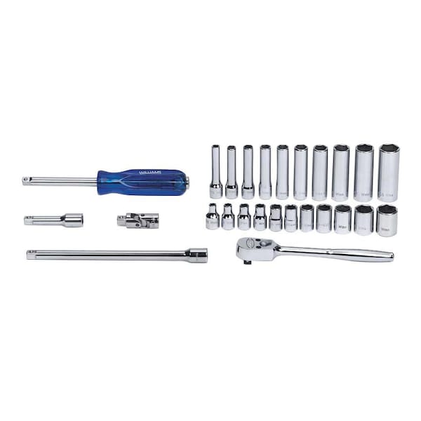 Williams Socket Set, 1/4" D, 6Pt, 26pcs., w/Box