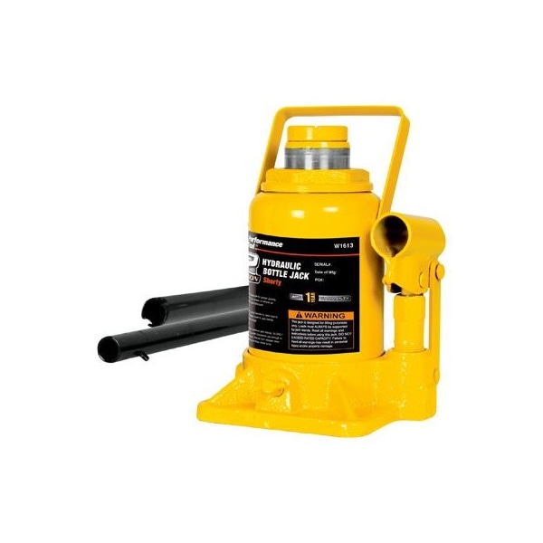 Performance Tool 12 Ton Shorty Bottle Jack Perfect For Home Auto Truck & Farm Use Heavy Duty Base 6-5/8 To 13 12 Ton Lift Capacity 24000 LB Low Profile Design Slides Into Tight Spaces All Steel Construction With 1 Piece Cast Steel Base & Rust Free Enamel Finish Adjustable Screw Top Extender Meets ASME PALD-2009 Standards For Safety & Performance Of Portable Automotive Lifting Devices.