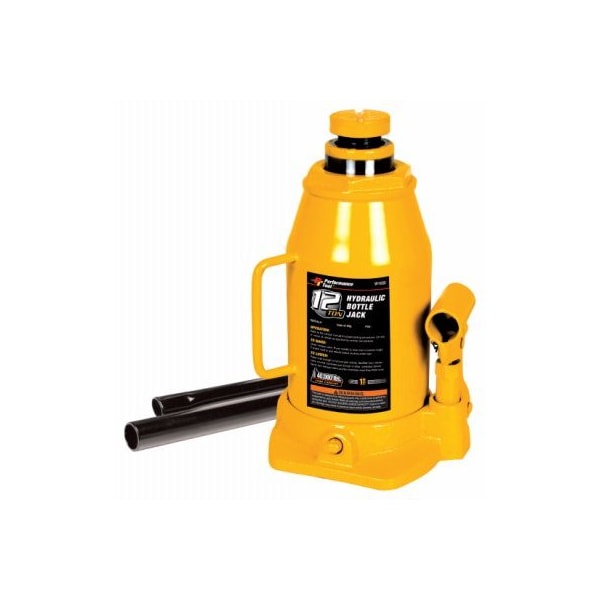 Performance Tool 20 Ton Hydraulic Bottle Jack 40000 LB Lift Capacity Patented Bypass Device Protects Against Over Pumping Steel Lifting Saddle Cleated For Load Gripping Power Ideal For Auto Truck Service Farm & Shop Use 20 Ton Capacity 9-1/2 To 17-3/4 Lift Range Meets ASME PALD-2009 Standards For Safety & Performance Of Portable Automotive Lifting Devices Heat Treated Critical Stress Areas Ensure Long Life Performance.