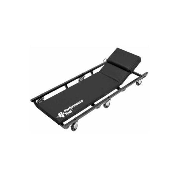 Performance Tool 40 6 Caster Creeper 300 LB Weight Capacity Powder Coated Heavy Duty Tubular Steel Frame Shielded 2-1/2 Swivel Casters Allow For Easy 360 Degree Movement Fully Padded Deck With Cushion Head Rest 2-1/2 Replacement Caster Assembly 40 x 17 x 4 Creeper Size Lever Action Headrest Adjusts To 3 Position Bring Comfort To Your Working Area.