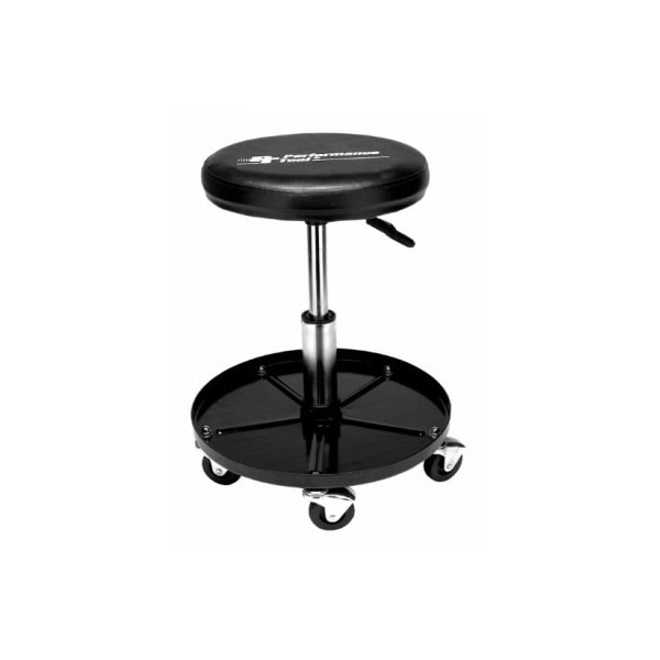 Performance Tool Professional Hydraulic Shop Seat Pneumatic Action Adjust Seat To 20 Height Quickly & Easily 15 Diameter Tool Tray Shielded 2-1/2 Casters Fully Padded 12 Diameter Seat 2-1/2 Replacement Caster.