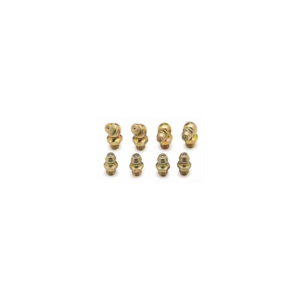 8 Piece, 1/4in x 28 Thread, SAE Grease Fitting Set, Includes 4 Each Straight, 2 Each 45 Degree and 2 Each 90 Degree.
