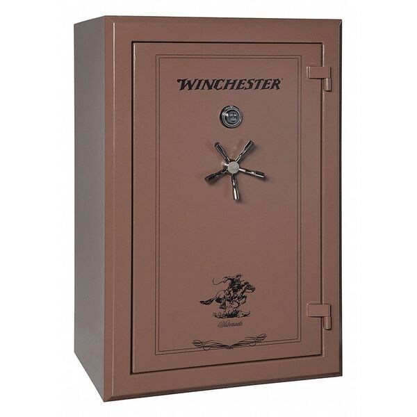 Gun Safe, Color Saddle Brown, Net Weight 1204 lb, Capacity 40 cu ft, Fire Rating 2 hr, Water Endurance 0, Material Steel, Finish Powder Coated, Finger Print Memory 0, Lock Style Combination Dial, 5 Number of Shelves, Number of Bolts 14, Outside Height 60 in, Outside Width 40 in, Outside Depth 29 in, Inside Height 55 in, Inside Width 34 in, Inside Depth 17 in, Holds Photos, Records, Firearms, Jewelry, Wills, Cash, Cameras, Collectables, Meets UL Listed