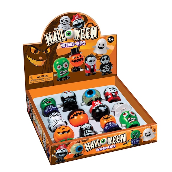 This Halloween assortment of Wind Up toys includes Jack-O-Lanterns witches mummies skeletons and more. Each display of your favorite past time has twelve different wind up toys. You will want to collect them all and wind them up and race them! Give them as a gift keep one on your desk or race with your kids!