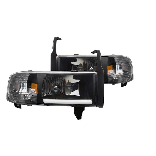 Dodge Ram 1500 1994-01/ 94-02 Dodge Ram 2500 / 94-02 Dodge Ram 3500 Light Bar DRL Head Lights - Black / Clear