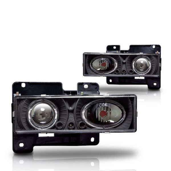 Chevy C/K 1988-98 / 95-99 Chevy Tahoe / 92-99 Chevy Suburban / 92-94 Chevy Blazer 88-98 GMC C/K / 92-99 GMC Suburban / 92-99 GMC Yukon Halo Projector Head Lights - Black / Clear