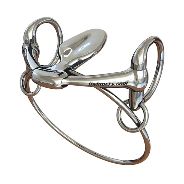 Winning Tongue Plate Dexter Bit with Extended Plate corrects breathing problems, and stops displacement of the soft palate. The bit arms have limited travel to prevent outer ring pressure, and pain to the cheek and lips.Widely used in thoroughbred and quarter horse racing.Material: Stainless Steel