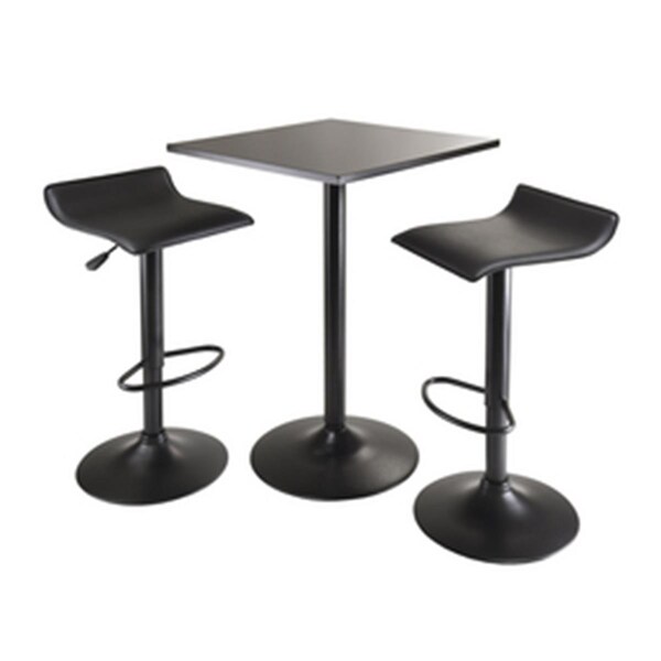 Obsidian 3pc Table Set- Square Table Counter Height with 2 Airlift Stools all Black