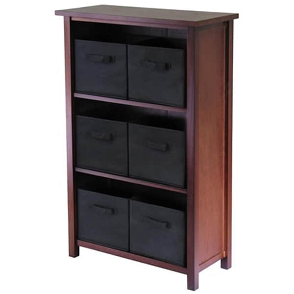 Verona 3 Section M Storage Shelf with 6 Foldable Fabric Baskets - Walnut and Black