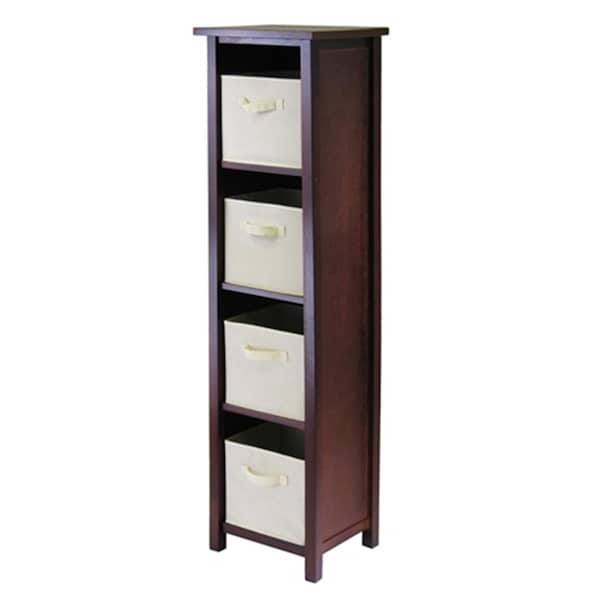 Verona 4 Section N Storage Shelf with 4 Foldable Fabric Baskets - Walnut and Beige