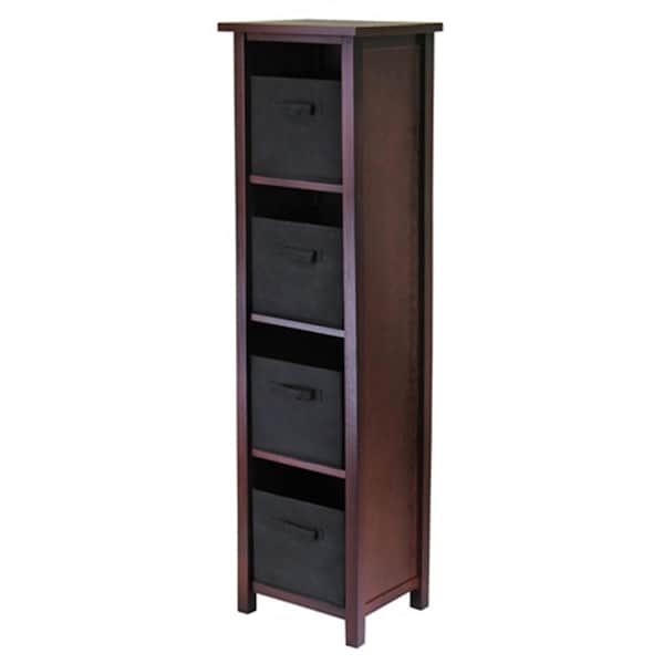 Verona 4 Section N Storage Shelf with 4 Foldable Fabric Baskets - Walnut and Black