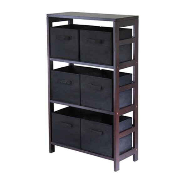For over three decades Winsome Furniture has been a manufacturer and distributor of high quality pantryware and lifestyle furniture for the home. Specializing in solid wood Winsome has continually brought forth innovative products in combinations of solid wood and other various materials such as wrought iron aluminum steel marble and glass. Decorate in your style and display only the best quality today. Capri 3-Section M Storage Shelf with 6 Foldable Black Fabric Baskets - Walnut. Dimensions (L x W x H): 25.25 x 11.25 x 42".
