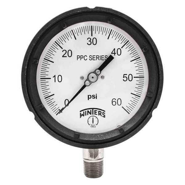 4 1/2 in Dial, 1/2 in NPT Bottom Location, Phenolic Case Material