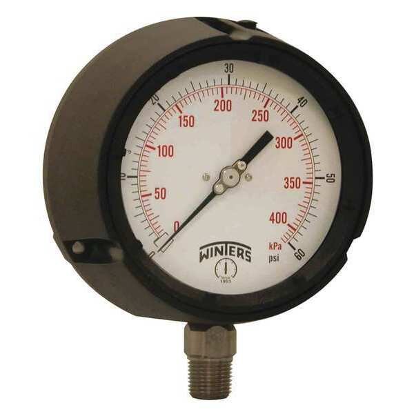 4 in Dial, 1/2 in NPT Bottom Location, Phenolic Case Material
