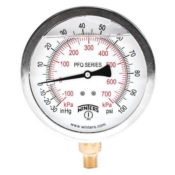 Qual Ss/Br Gauge4" 1/4Lm 30-0-100Psi/Kpa