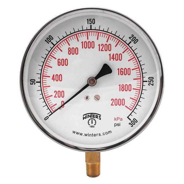 Contractor 4.5" 0-300 psi/Kpa 1/4" Btm, 4 1/2 in Dial, 1/4 in NPT Bottom Location