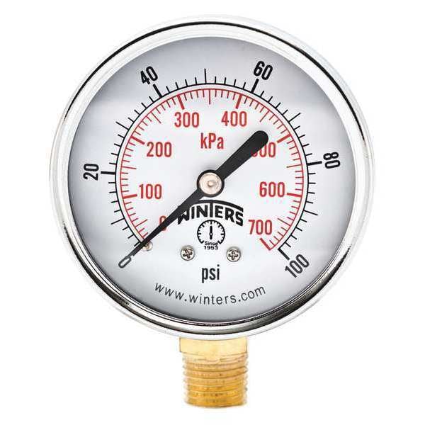 Economy 2.5 In. 0-100 psi/Kpa 1/4 In. Btm