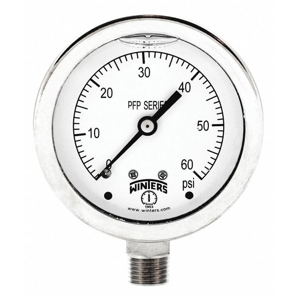 Filled Ss/Ss Gauge 2.5" 1/4Lm 60 psi, 2 1/2 in Dial, 1/4 in NPT Bottom Location