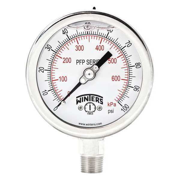 Filled Ss/Ss Gauge 4" 100 psi/Kpa 1/2 Lm, 4 in Dial, 1/2 in NPT Bottom Location