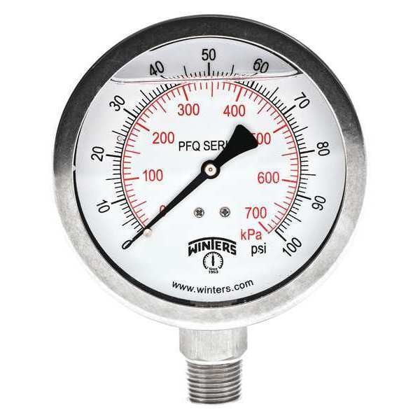 Qual. Ss/Ss Gauge 4" 1/2 Lm 100 psi/Kpa, 4 in Dial, 1/2 in NPT Bottom Location