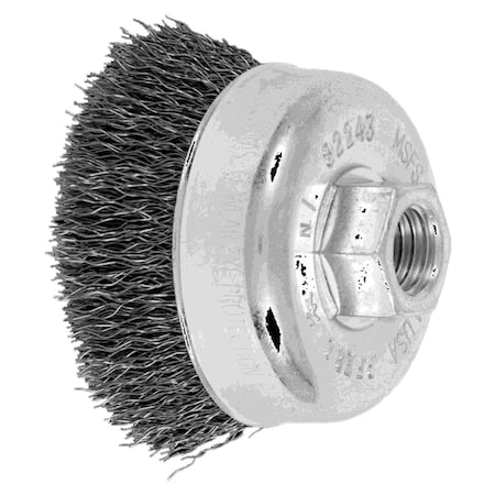 Cup Brush, 3 in Brush Dia, M14x2 Arbor Hole, Crimped Filament/Wire Type, 0.014 in Filament/Wire Diam