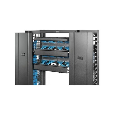 CABLE MGMT DUCT PANEL HORZ, 2U, 19" W, 4" EXT, NO COVER, STEEL BLACK