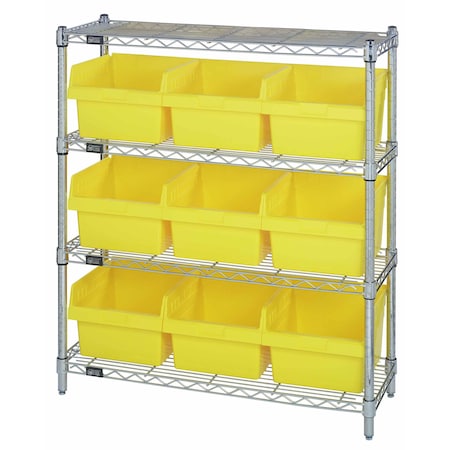 WIRE SHELVING UNIT W / YELLOW BINS