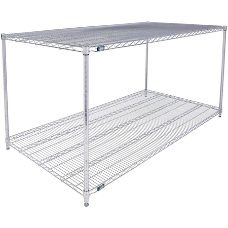 Nexel 2 Shelf, Chrome Wire Shelving Unit, Starter, 1 Solid Shelf, 60"W x 24"D x 34"H