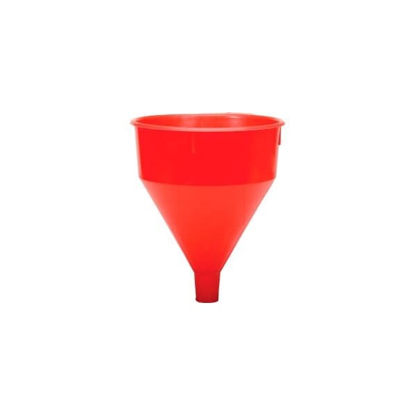 FUNNEL KINGĀ® RED SAFETY POLYETHYLENE 6 QUART FUNNEL REDUCE SPILLING AND FLUID LOSS WHEN FILLING STORAGE, TRANSPORT DRUMS, AND PERFORMING VEHICLE MAINTENANCE. THIS 6 QUART RED SAFETY FUNNEL IS CONSTRUCTED OF DURABLE POLYETHYLENE THAT IS BUILT FOR LONG TERM USE AND WON'T DETERIORATE WITH REPEATED EXPOSURE TO PETROLEUM PRODUCTS. DIMENSIONS: SPOUT DIAMETER IS 4-5/16' SPOUT IS 1-5/8' OVERALL HEIGHT: 10-1/2' 6 QUART CAPACITY.