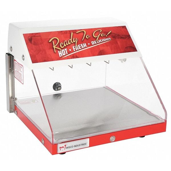 Heated Display Case, Number of Shelves 1, Holds (1) 12 in Pizza or Equivalent, Color White Top, Voltage 120V AC, For Use With Pizzas, Hot Dogs, Tacos, Breaded Products, French Fries, Other Bagged Foods, Features Heated Base, Material Acrylic Enclosure/Stainless Steel Base, Standards UL, NSF