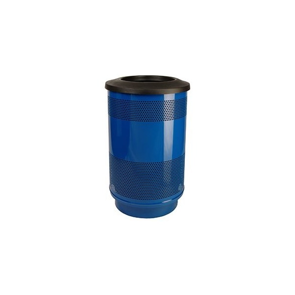 Witt Standard Series, 55 gallon perforated steel receptacle with a flat top lid that has a large center opening. This receptacle is perfect for arenas, universities, healthcare facility entryways or any high traffic area. We offer 18 standard powder coat finishes that will add a layer of protection and the protective coated base protects the unit and surface from rust. This receptacle comes standard with a rigid plastic liner, anchor kit, leveling feet and lid attachment kit.