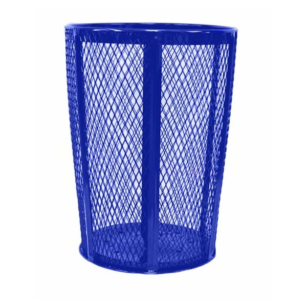 Expanded metal outdoor container. Added vertical ribs for reinforcement and see through mesh is great for added safety in public areas. Powder coat finish for maximum wear and protection.