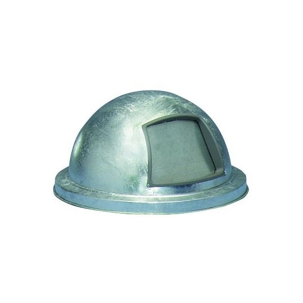 Hot dipped galvanized dome top lid with push door. Fits most 30 to 31 gallon trash cans.