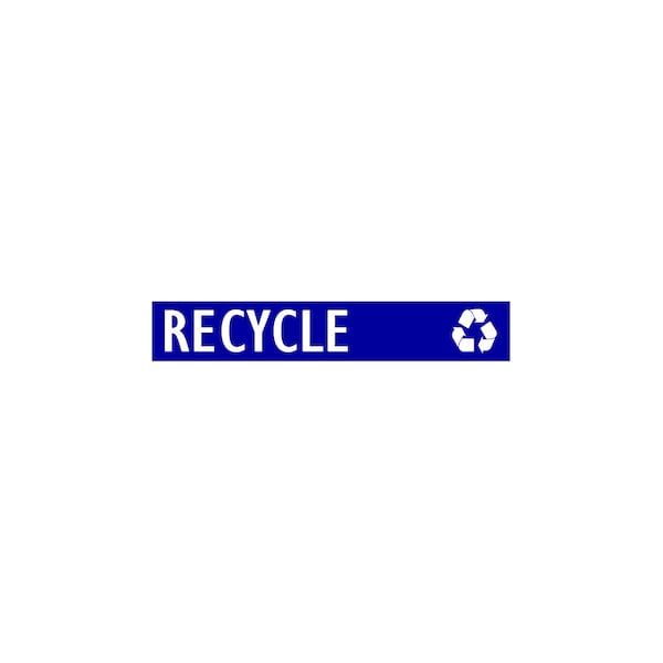 White die-cut decal RECYCLE with chasing arrow. Note: Blue background is for display purposes only; the actual product is white with no background