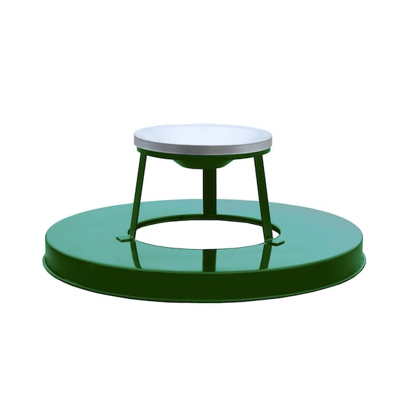 Ash urn lid only for outdoor receptacles. The lid comes with an ash pan attached to the flat top lid that allows disposal of trash as well as cigarette butt by-products. The ash top has a gren powder coat finish to add a layer of protection.