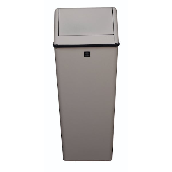 Medium, square hamper and swing top. Perfect fit for hotels, offices, healthcare facilities, educational, and industrial venues in lunch and break rooms. Protective rubber gasket protects walls or tight space areas. Complete with a powder coat finish. Comes standard with 4 feet to lift off the floor and protect it from scratches. Optional rigid plastic liner available.