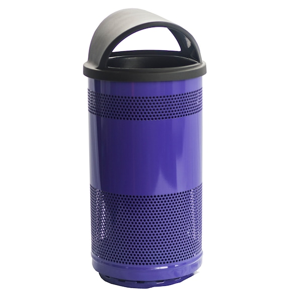 Standard Series 35 gallon perforated steel receptacle with hood top lid. Perforated design adds style to functionality. Protective coated bottom helps to reduce rust rings and marring of surface. The powder coat finish withstands the weather and elements. Comes with rigid plastic liner, anchor kit and lid attachment kit.