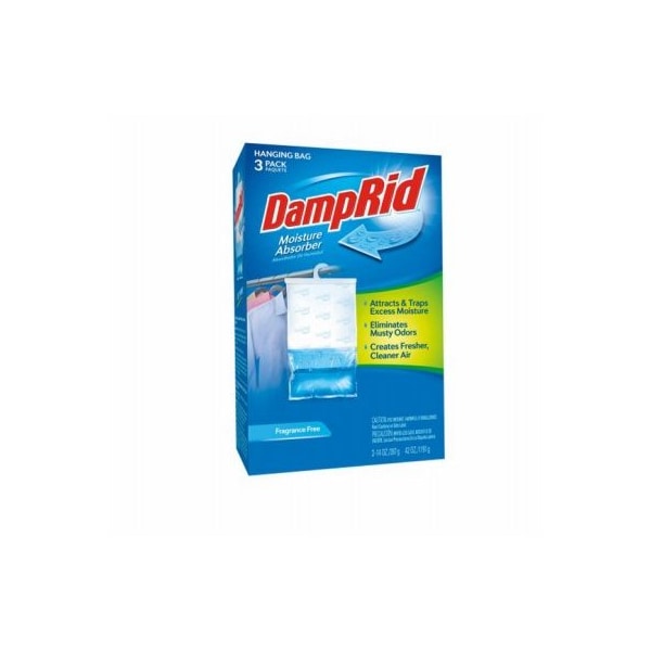 Damp Rid 3 Pack 15.4 OZ Closet Freshener Fragrance Free Moisture Absorber. 10% more moisture absorbing power for longer lasting moisture absorption. Attracts & traps excess moisture eliminates musty odors creates fresher cleaner air. Time release fragrance technology works continuously during the full life of the product. Non-Toxic.