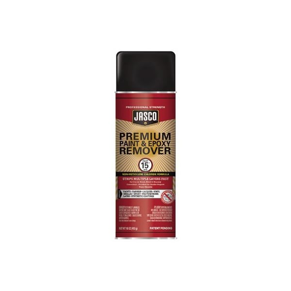 Jasco 16 OZ Premium Paint & Epoxy Aerosol Remover Non-Methylene Chloride Works To Strip Multiple Layers In As Fast As 15 Minutes Use On Wood Metal Concrete & Masonry Strong Following With Professional Users Not Available For Sale In California.