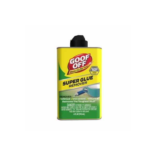 4 OZ Goof Off Professional Super Glue Remover Non-Methylene Chloride Formula Capable Of Removing All 3 Types Of Super Glue Technology Super Glue Acrylic Epoxy Adhesives & Gorilla Glue Formula Quickly Cuts Through The Toughest Cured Adhesives & Glues Perfect For The Home Garage Toolbox Workshop & The Workplace.