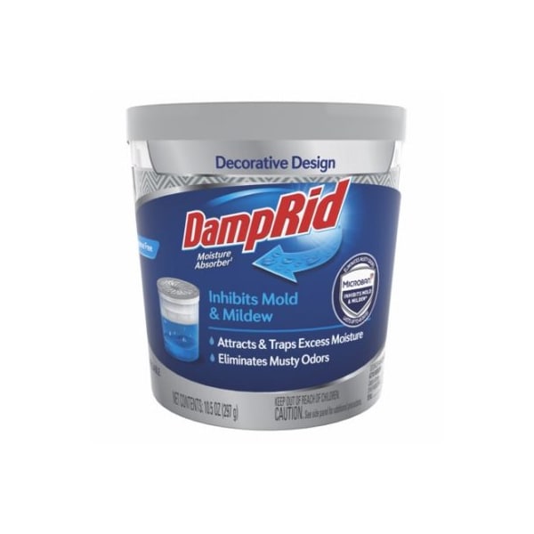 Damp Rid, 105 oz Refillable Fragrance Free Moisture Absorber with Micro Ban Inhibits mold, mildew, attracts, traps excessive moisture, eliminates musty odors by drying the air to a level where mildew, mold can't grow Odorless, non toxic, can be refilled, reused